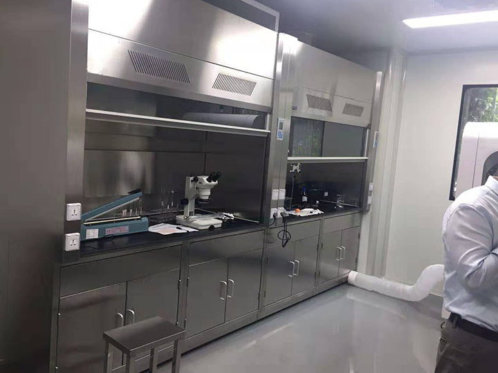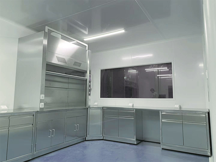 4.活動背板:柜體背面為設(shè)備夾層,柜子后部有可移動檔板,用于隱藏從地面預(yù)留或天花板引出功能柱到實驗臺面的水、電、氣管路,可在不用任何工具的情況下進(jìn)入維修通道。
